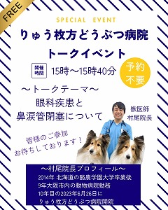 『りゅう枚方どうぶつ病院』の獣医師 村尾院長によるSPECIALトークイベントを開催いたします♪