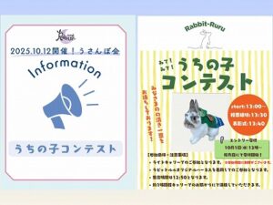 イベントお知らせイベント情報~うちの子コンテストのご案内~ご参加の皆様へ2025年10月12日(日)開催の「 Rabbit-Ruru うさんぽ会~和幸カントリー倶楽部~」では、うちの子コンテストをいたします♪参加条件などございますので以下をご一読よろしくお願いいたしま...