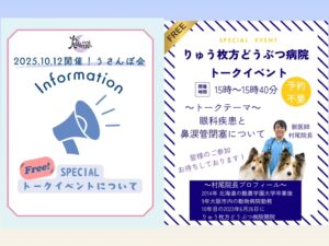イベントお知らせイベント情報~トークイベントのご案内~ご参加の皆様へ2025年10月12日(日)開催の「 Rabbit-Ruru うさんぽ会~和幸カントリー倶楽部~」昨年もトークイベントをしてくださった『りゅう枚方どうぶつ病院』の獣医師 村尾院長によるSPECIALト...