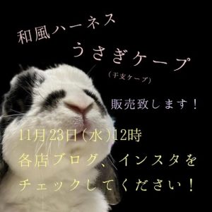 イベントお知らせイベント情報いつも当店をご愛顧いただきありがとうございます!11月23日(水)より各店にてお正月(和風)ブースが登場します!!そして、和風ハーネス&干支ケープ(うさぎケープ)も販売します!※和風ハーネスに関しましては後日、男の子タイプが少しですが追加で...