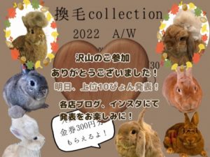明日は換毛Collection2022A/W上位10ぴょんの発表です!!