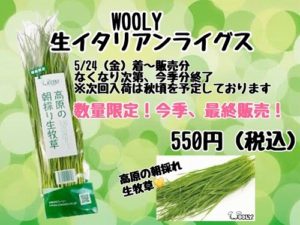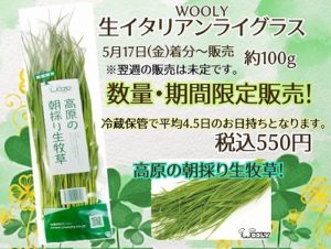 【数量・期間限定】WOOLY生イタリアンライグラス販売します♪