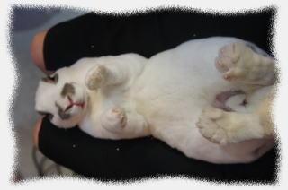 お名前:大福君(ミニレッキス)カラー:ブロークンオパール ひょうきんな性格がナイスな大福君!名前もイケてます(^○^)写真は爪切の最中★かわい~♪